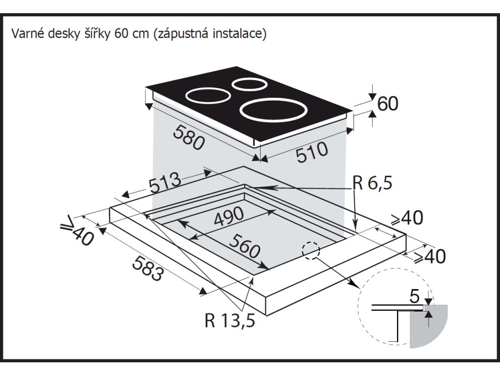 Možnosť zapustenia varnej dosky do pracovnej dosky: | Áno |