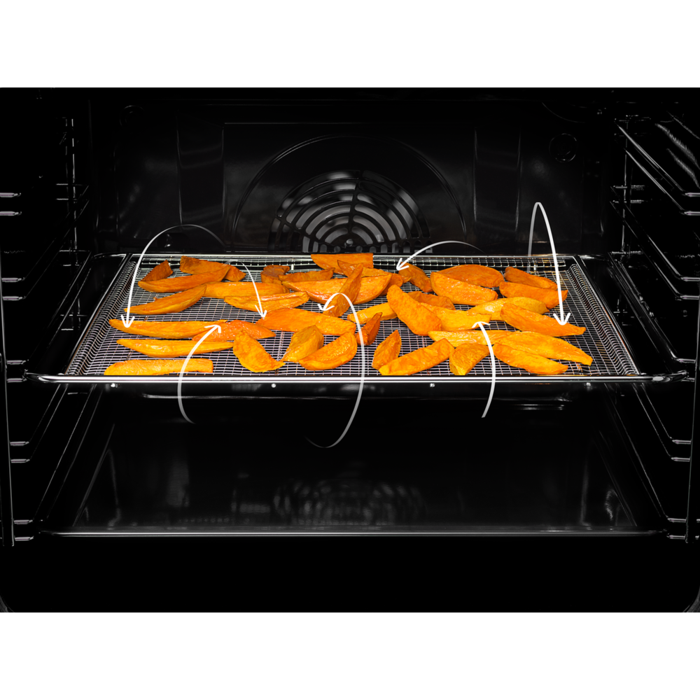 Doprajte si dokonalé chrumkavé hranolčeky alebo chutnú zeleninu upečenú s menším množstvom oleja s pomocou špeciálnej funkcie na plechu AirFry. Perforovaný plech umožňuje horúcemu vzduchu vo vnútri rúry neobmedzene cirkulovať, takže sa jedlo pečie zo všetkých strán.