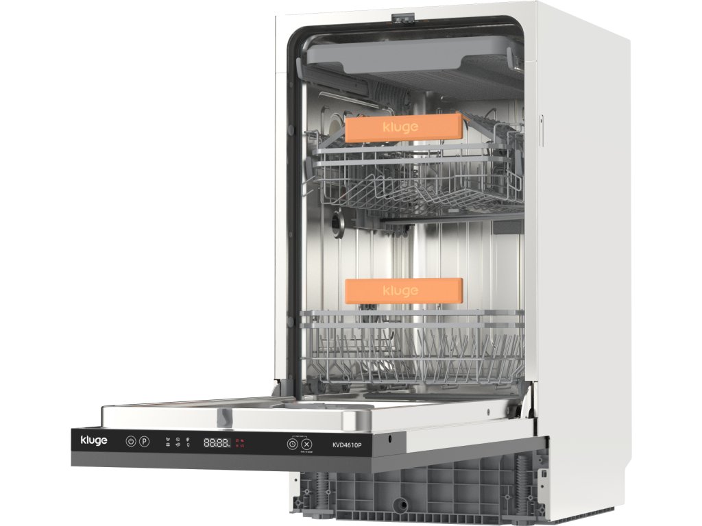 Plne vstavaná umývačka riadu s kapacitou 11 súprav riadu a šírkou 45 cm, ideálna do menších kuchýň; Medzi hlavné vlastnosti patrí 6 umývacích programov a 6 teplôt; Biely LED displej s dotykovým ovládaním; Kĺzavý systém uchytenia nábytkových dvierok SlidingDoor; Výška dekoračných dvierok 66 ~ 80 cm; Automatické otváranie dvierok; Info time light premietanie času na podlahu; Invertorový motor; Odložený štart až o 24 hodín; Vnútorné usporiadanie ponúka tretí horný zásuvný košík na príbory a nastaviteľný horný kôš; Pre úsporu vody a energie môžete zvoliť umývanie v hornom, spodnom alebo oboch košoch; Sklopné hroty v spodnom koši; Hlučnosť 45 dB(A); Energetická trieda C; Spotreba energie je 63 kWh na 100 cyklov a vody 9,2 l na cyklus. Rozmery (VxŠxH): 81,5 ~ 87,5 x 44,8 x 55 cm