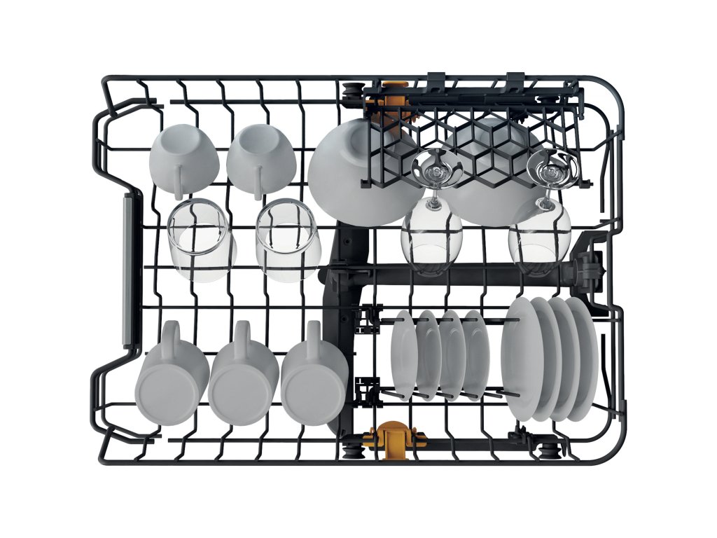 Nastaviteľný horný stojan. Nastaviteľný horný regál umývačky riadu vám umožní v prípade potreby vytvoriť dodatočný priestor a bez námahy umiestniť neobvykle tvarované predmety. |