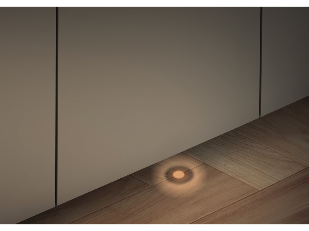 Užitočná informácia. Táto umývačka riadu Whirlpool premieta na podlahu elegantné a nenápadné svetlo, ktorým signalizuje priebeh a koniec cyklu. |