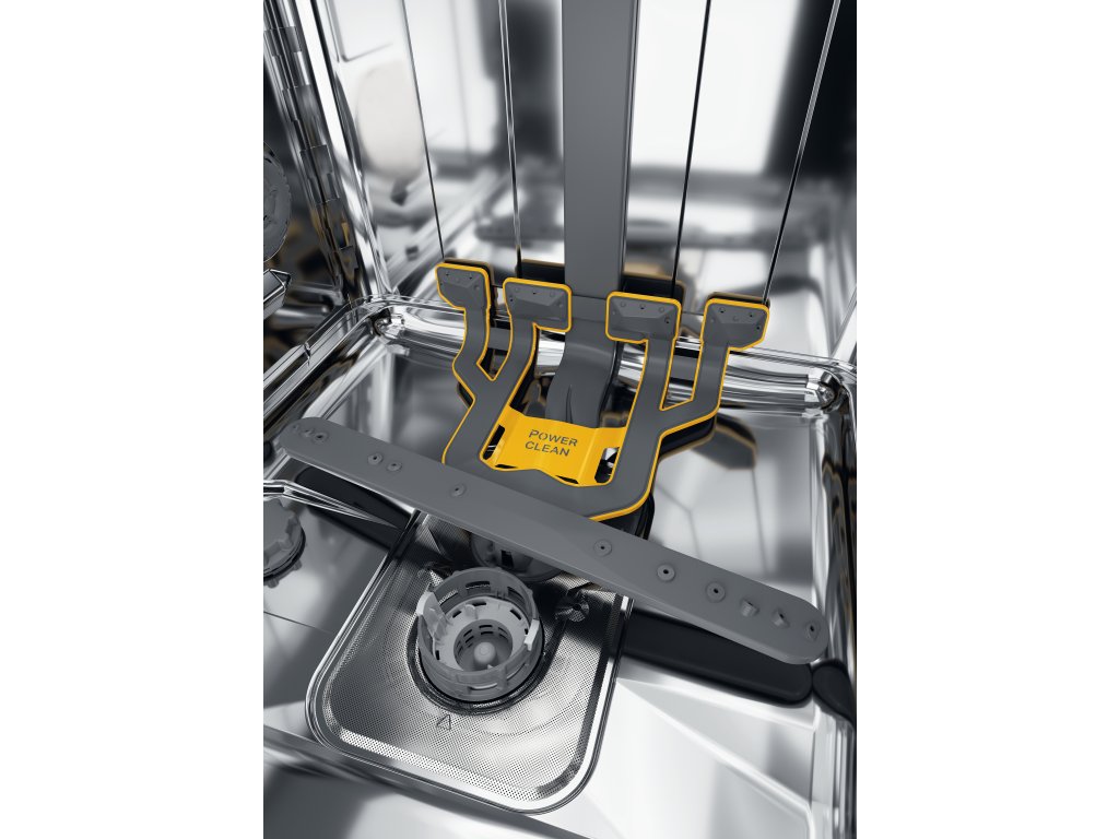 O 60%* výkonnejšie vodné trysky umiestnené v spodnom koši, ktoré je možné aktivvoať pre zvýšenie výkonu umývania a zaistiť tak dokonale čistý riad bez predumývania. Rovnako optimalizuje umiestnenie riadu a poskytuje o 30%** priestoru navyše v spodnom koši. *Percento vypočítané oproti výkonu vody v cykle bez aktivovanej voľby PowerClean. **Percento vypočítané oproti náplni pri modeloch z rovnakého radu Whirlpool bez PowerClean. |