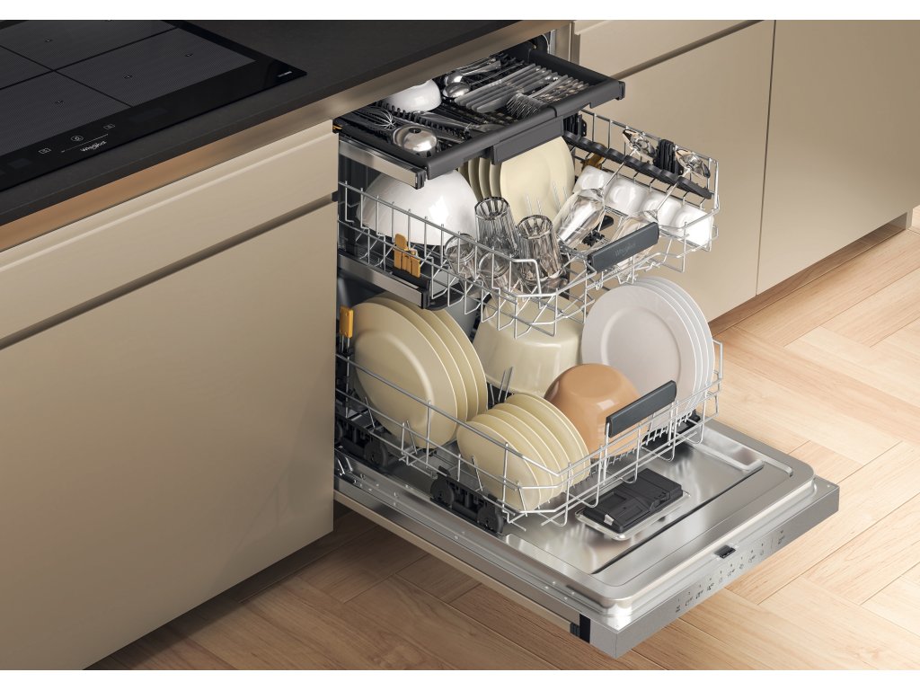 Väčši vnútorný priestor ponúka o 10% miesta navyše*, aby ste mohli do spodného koša vložiť taniere na pizzu s priemerom až 32 cm** a do prostredného koša dezerné taniere s priemerom až 19 cm, všetko naraz. *Porovnanie medzi modelmi umývačiek riadu Whirlpool so štandardným vnútorným priestorom a modelmi umývačiek riadu Whirlpool s priestorom MaxiSpace. Extra priestor sa vzťahuje na zväčšenú celkovú ukladaciu plochu medzi tromi zásuvkami. **V donom koši je možné umiestniť taniere až s priemerom 32 cm s hĺbkou až 2 cm. Prostredná zásuvka musí byť v hornej polohe. |